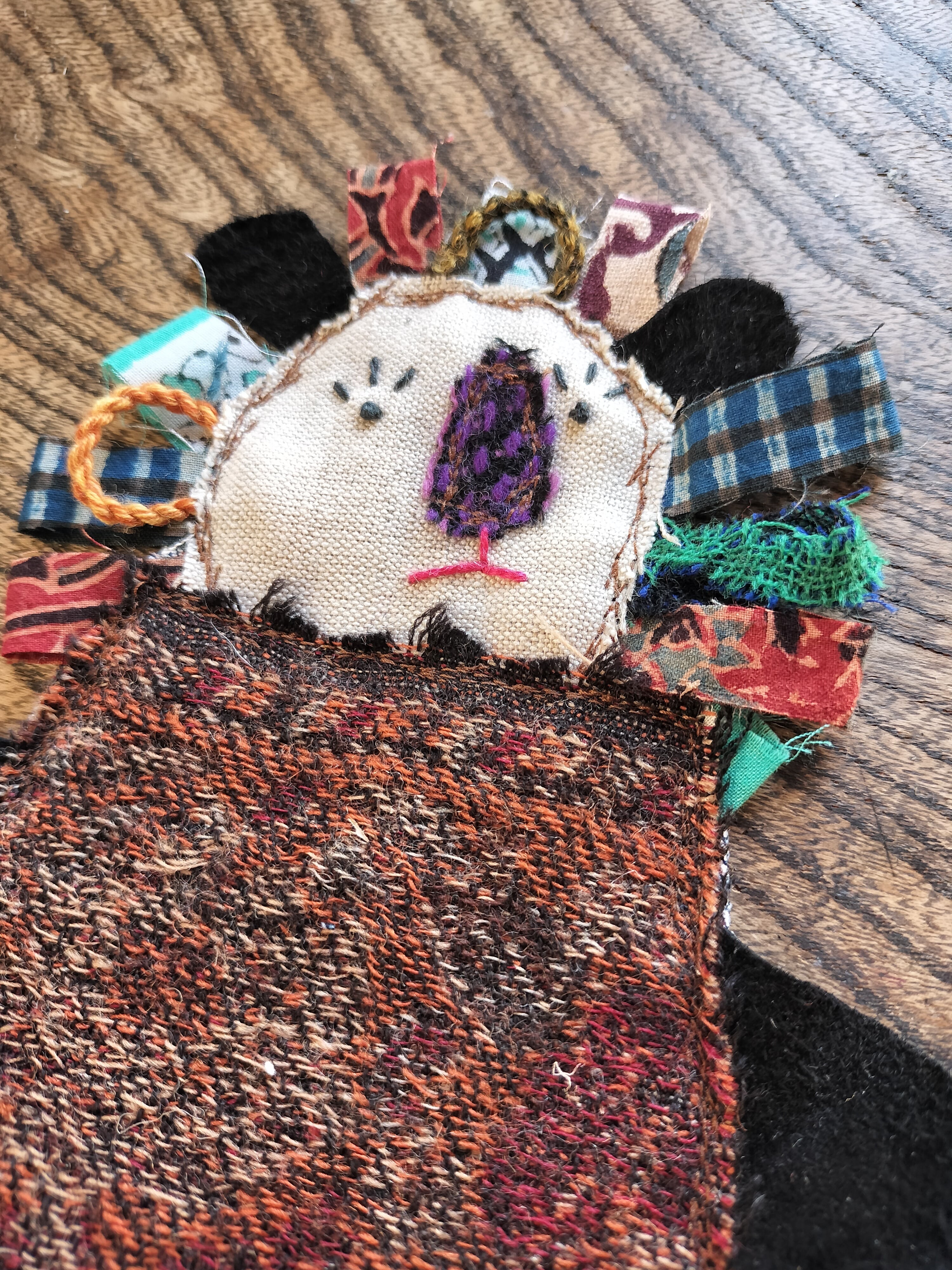 インドのウールや更紗を中心に手足耳は革、後面はジーンズ生地を使っています。